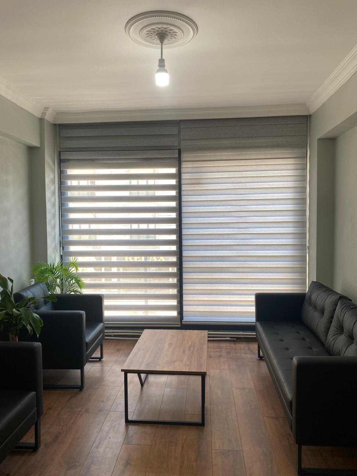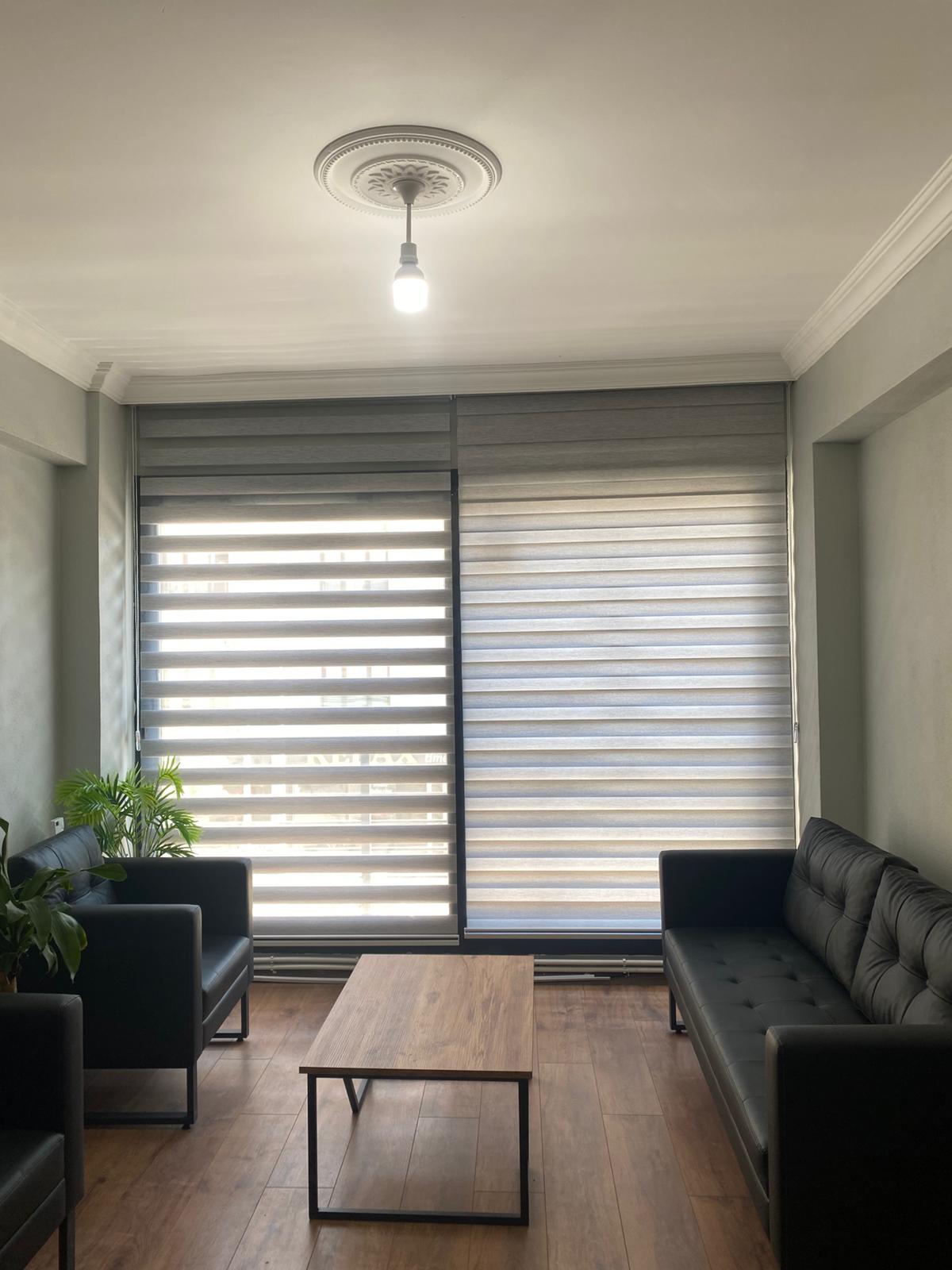 Çalışma alanlarında profesyonel bir görünüm ve konforu bir arada sunan ofis perdeleri, ışık kontrolü ve mahremiyet sağlar. Modern tasarımı, dayanıklı yapısı ve kolay kullanımıyla ofis dekorasyonunu tamamlar, verimli bir çalışma ortamı oluşturur.